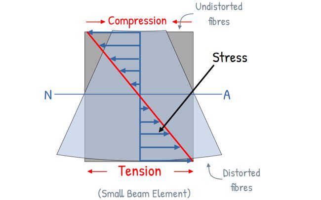 Therefore, the bending stress also varies linearly from zero at the neutral axis to maximum at the extreme fibres.