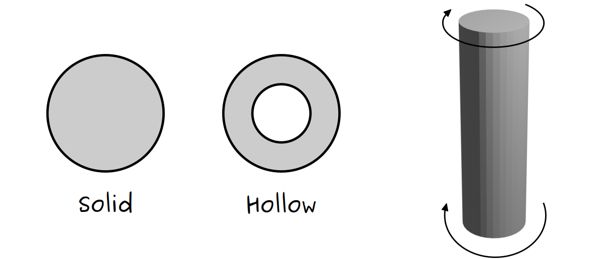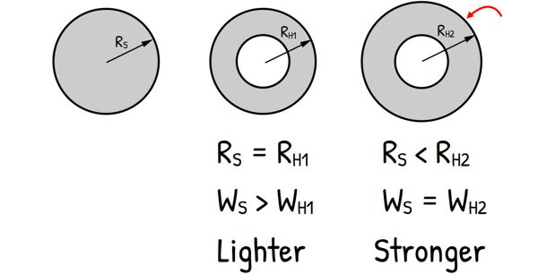 So, we can remove the material from the center and place it farther away from the center, near the outer surface. This makes the diameter slightly larger and makes the shaft hollow.