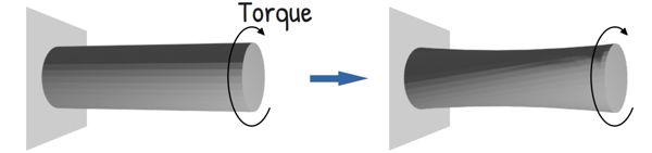 Imagine we fix one end of this shaft so it can’t move, and we try to twist the other end. This twisting of the object is what we call Torsion. And the force causing this twist is called Torque.