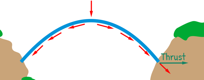 Well, an ARCH is a natural marvel of efficiency. Imagine placing weight on the top of an ARCH. It efficiently channels that downward force along its curve, converting a significant portion of it into a powerful outward push, also called thrust, at its base. This outward force then gets transferred into the sides of the gorge, right where the ARCH touches the mountains.