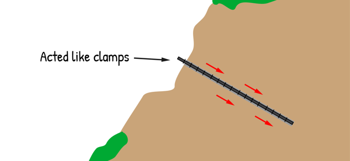 Engineers began by creating a stable foundation for the bridge. They basically employed three main techniques to stabilize the fractured rock wall.