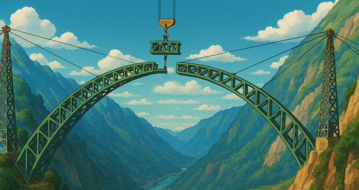 For this, engineers turned to a method called cantilever construction. They started building the ARCH outward from both sides — little by little — until the two halves would finally meet in the middle.