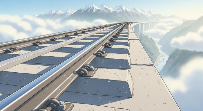 And for the railway track itself, they employed a modern zero-ballast system. This means there’s no traditional ballast or crushed stones underneath; instead, the tracks are directly fastened to the concrete deck, offering superior stability, reduced maintenance, and enhanced safety on this critical high-speed link.